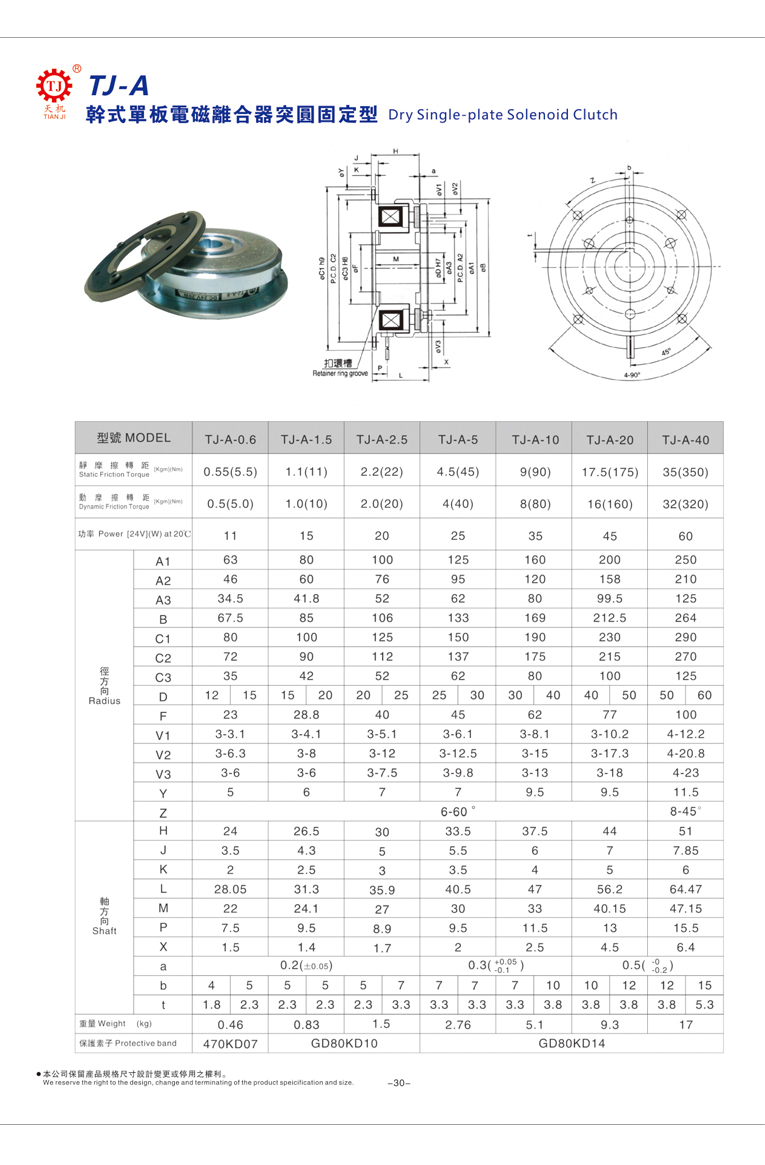 东莞天机传动(台湾天机牌)电磁离合器生产厂家制造销售干式单板电磁离合器(摩擦式电磁离合器)