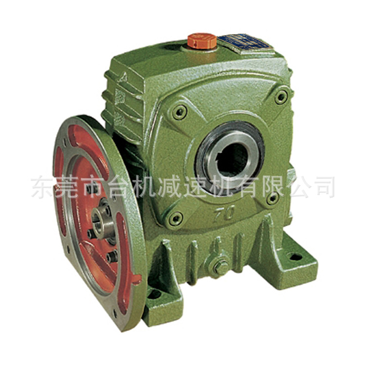 东莞天机传动(台湾天机牌)生产销售的WPDO蜗轮蜗杆减速机又称卧式蜗轮蜗杆减速机或法兰式蜗轮蜗杆减速机,卧式安装型输入端为法兰连接(直接连结电机),卧式安装型,输出端朝上,常规的减速机速比有1/10、 1/20、1/30、1/40、1/50、1/60等。
